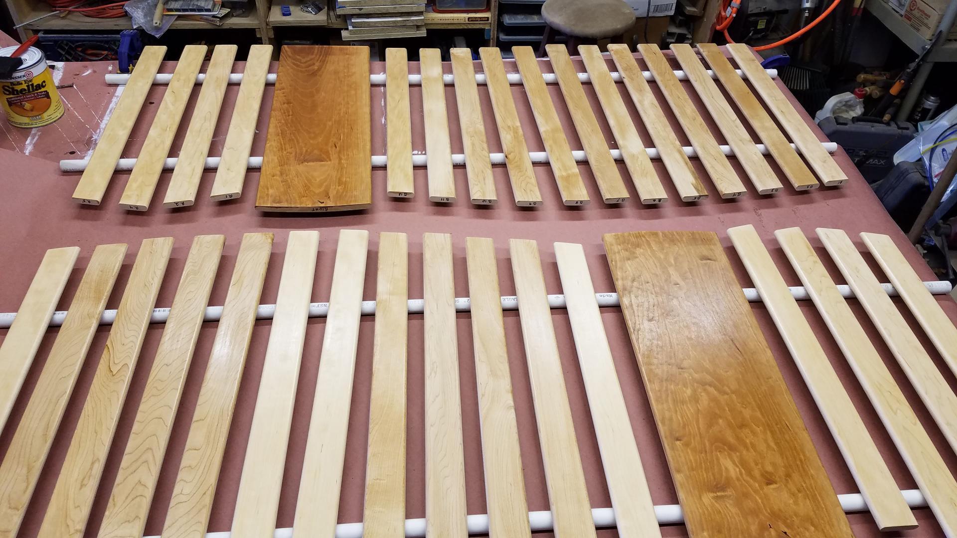 After cutting all the parts out to rough size, all edges got cleaned up and squared, ready for the next step.