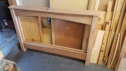 With the draw-bored tenons, no clamps were needed to hold the rails during glue up. Which is good, because I don't have clamps long enough to do that.