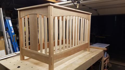 After all the mortises were done, and the pickets were cut to match the curve, I had to do a quick dry assembly to see the whole thing as a crib. I was pretty happy with it.