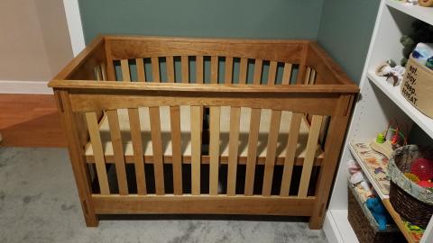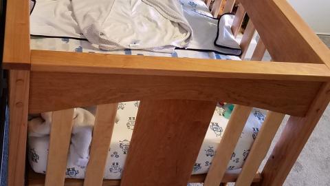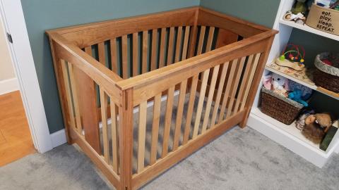 Finally after I found my inspiration, I jumped into SketchUp and modeled out the crib I wanted to make. I wanted traditional joinery, no hex-head bolts and fake tenons for my kid's first bed. Also, it had to be all hardwoods, no particle board or MDF . I decided on a two-tone effect using one wood for the frame and another for the pickets, with some wider panels on the ends so it didn't look 100% like a baby jail. I had to go back and forth with my wife on what those woods would be and convince her that it would look good. We settled on Cherry for the frame and Maple for the pickets.